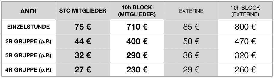 Die Kosten für die Trainerstunden starten bei folgenden Preisen: